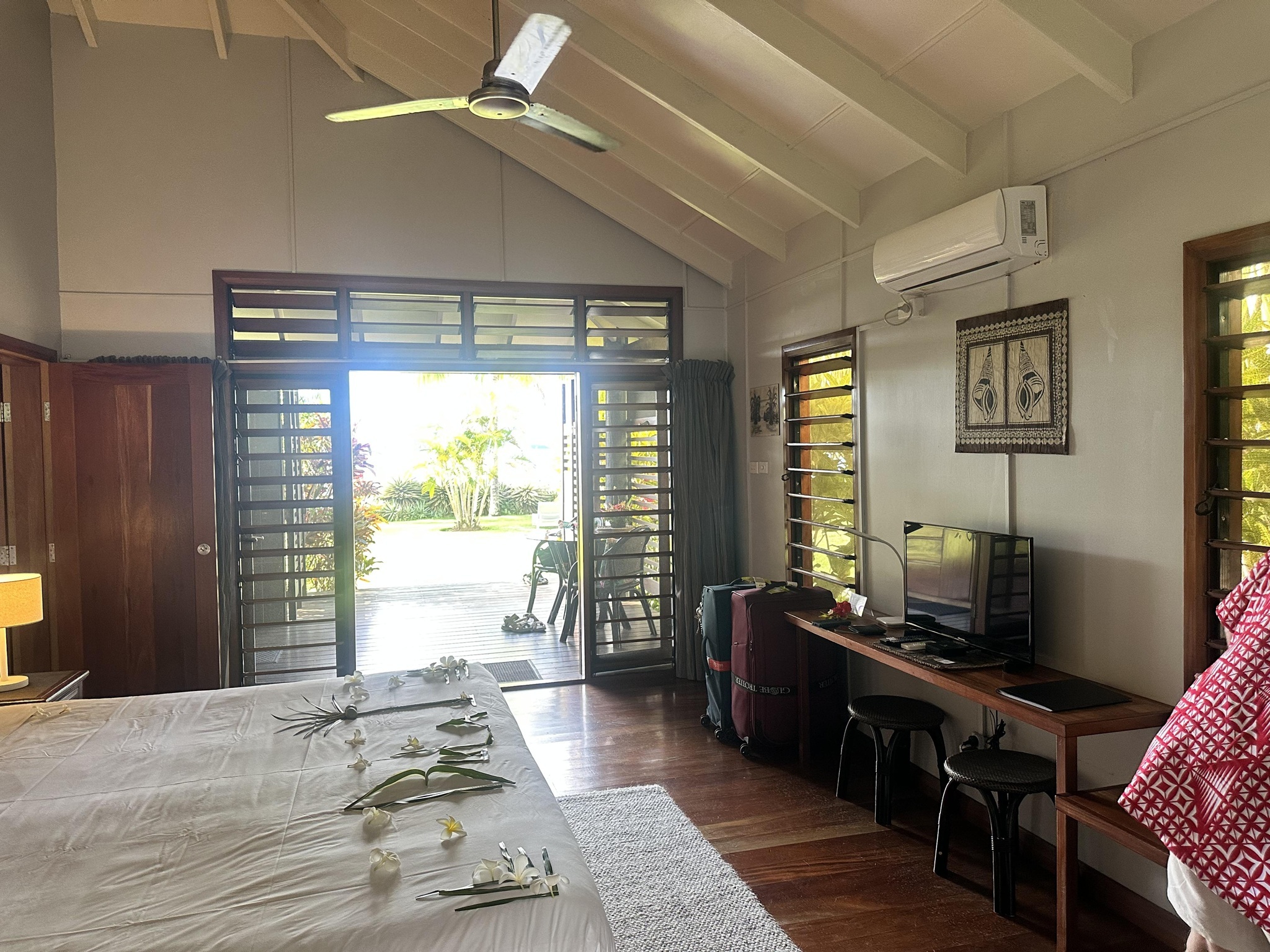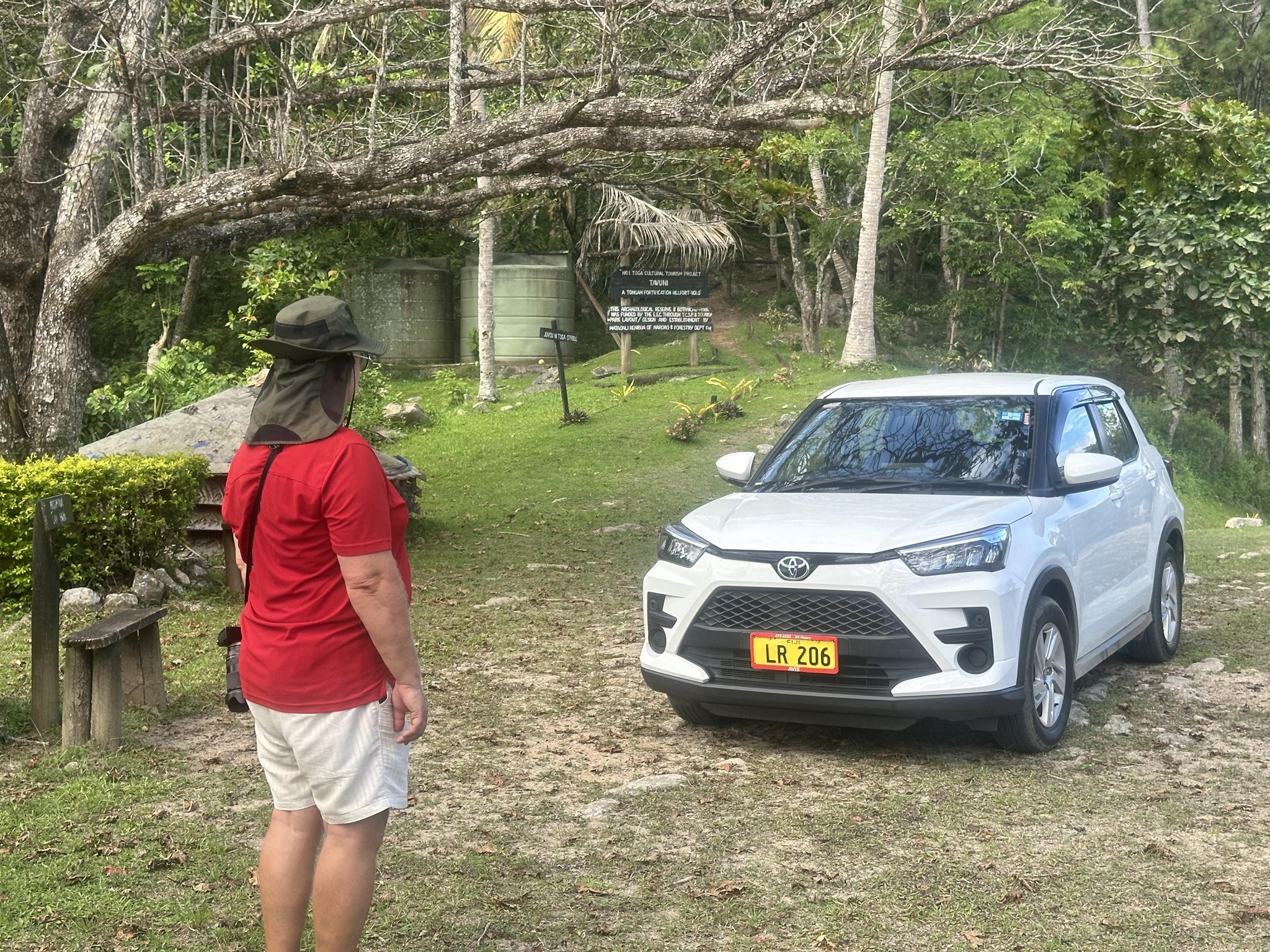 Wir übernachteten im Yatule Resort & Spa, einem Resort, das etwa eine Stunde mit dem Auto vom Flughafen von Nadi entfernt liegt. Die Bungalows sind modern und schick eingerichtet. Das Meer ist in etwa 100 Metern Entfernung zu sehen. Eine lokale Tanzgruppe zeigt einmal in der Woche nach Einbruch der Dämmerung schwungvolle Tänze und Akrobatik mit Fackeln. Am Tag nach unserer Ankunft wurde uns der über Pacific Travel House gebuchte Mietwagen von Avis zu unserer Unterkunft gebracht. Auf Fidschi herrscht Linksverkehr. Der Verkehr ist, mit Ausnahme des Stadtgebiets von Nadi, sehr ruhig, sodass es sich angenehm fahren ließ. Außerhalb geschlossener Ortschaften beträgt die Höchstgeschwindigkeit 80 km/h. Es gibt eine gut ausgebaute Ringstraße, die um die Insel herumführt; ansonsten sind die Straßen befestigte Schotterpisten. Mit dem Mietwagen besuchten wir den Singatoka Dunes Nationalpark, den Sleeping Giant Orchideen-Park sowie die Städte Nadi und Singatoka.