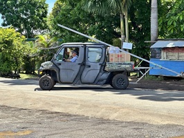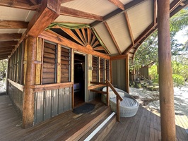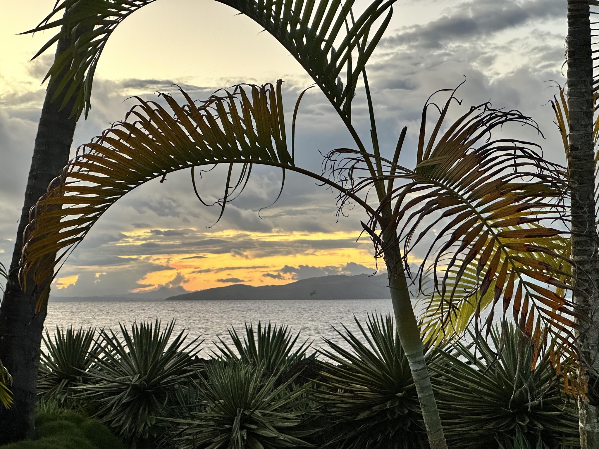Wir erreichten die Insel mit einem Flug der Fiji Airways, der mit einer Twin Otter durchgeführt wird. Der Taveuni Airport, auch Matei Airport genannt, ist ein kleiner Flughafen. Es gibt zwei Gebäude, und der Bereich unter dem Vordach, das beide Gebäude verbindet, dient als Warte und Abfertigungsbereich. Wenn eine Insel von Regenwald bedeckt ist, muss es dort auch häufiger regnen. Und dem ist auch so. Die Temperatur schwankte zwischen 25 °C und 30 °C. Zwar schien während unseres Aufenthalts am Morgen die Sonne, doch im Laufe des Vormittags bewölkte es sich. Gegen Mittag regelmäßig zogen Gewitter auf. Die meisten dieser Gewitter waren kurz und nicht sehr intensiv. Nur einmal erlebten wir einen sehr heftigen Gewittersturm mit starkem Regen. Doch auch dieser Sturm war nach zwei Stunden vorüber und wir wurden mit einem äußerst prachtvollen Sonnenuntergang belohnt. Wir besuchten Taveuni im November 2025, in diesem Monat beginnt auf Fiji die Regenzeit.