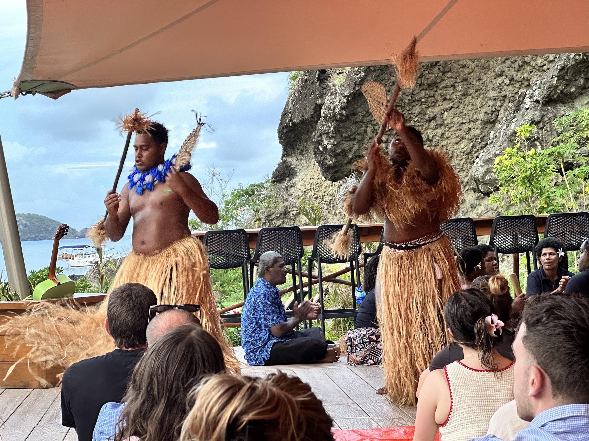 Auf Fidschi werden traditionelle Tänze heute oft als lebendige Kulturvorführungen für Besucher präsentiert – farbenfroh, rhythmisch und zugleich respektvoll gegenüber ihren Wurzeln. Die Shows kombinieren traditionelle Meke-Choreografien mit Feuer- oder Poi-Tänzen, die besonders in touristischen Abendprogrammen beliebt sind. Trotz dieser Anpassungen bleibt der Kern erhalten – Besucher sollen einen authentischen Einblick in Fidschis kulturelle Identität erhalten, eingebettet in eine festliche, einladende Atmosphäre.