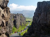 Island ist die größte Vulkaninsel der Erde und befindet sich knapp südlich des nördlichen Polarkreises. Im Nordatlantik haben zahlreichen Vulkane Islands die Insel Island geschaffen und nachhaltig geprägt. Es handelt sich bei Island um einen der wenigen Teile des Mittelatlantischen Rückens, der die Meeresoberfläche überragt. Island liegt auf dem Mittelatlantischen Rücken und damit sowohl auf der Nordamerikanischen als auch auf der Eurasischen Platte, wobei sich die Plattengrenzen von Südwesten nach Nordosten in etwa diagonal über die Insel ziehen. Die Platten entfernen sich jährlich etwa 2 cm voneinander. Die Wärme des Erdinneren speist Geysire und Thermalquellen, die von den Isländern zur Gewinnung von Energie und warmen Wasser genutzt werden.
